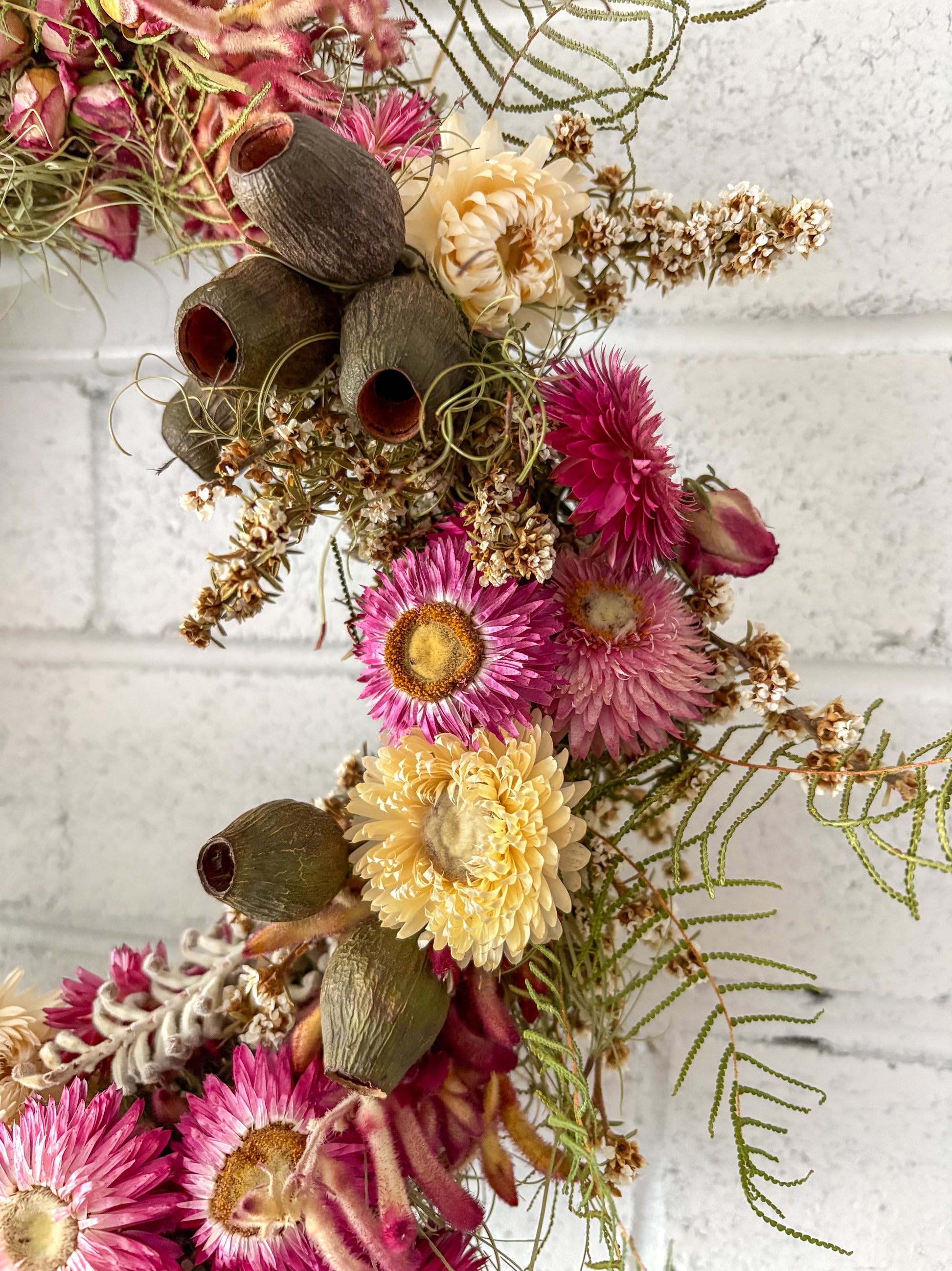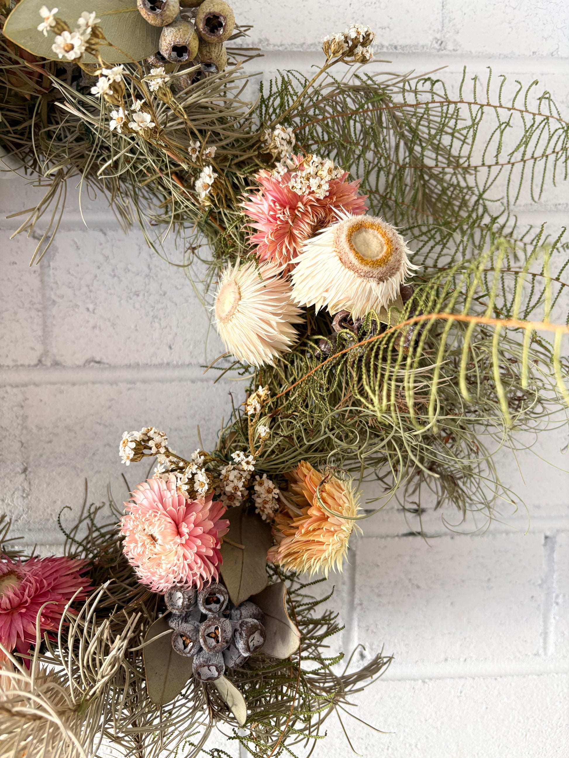 Please be aware as a natural product, natural colour variations may occur overtime due to environmental conditions. We appreciate your understanding that every wreath is unique and may vary slightly from the images shown.