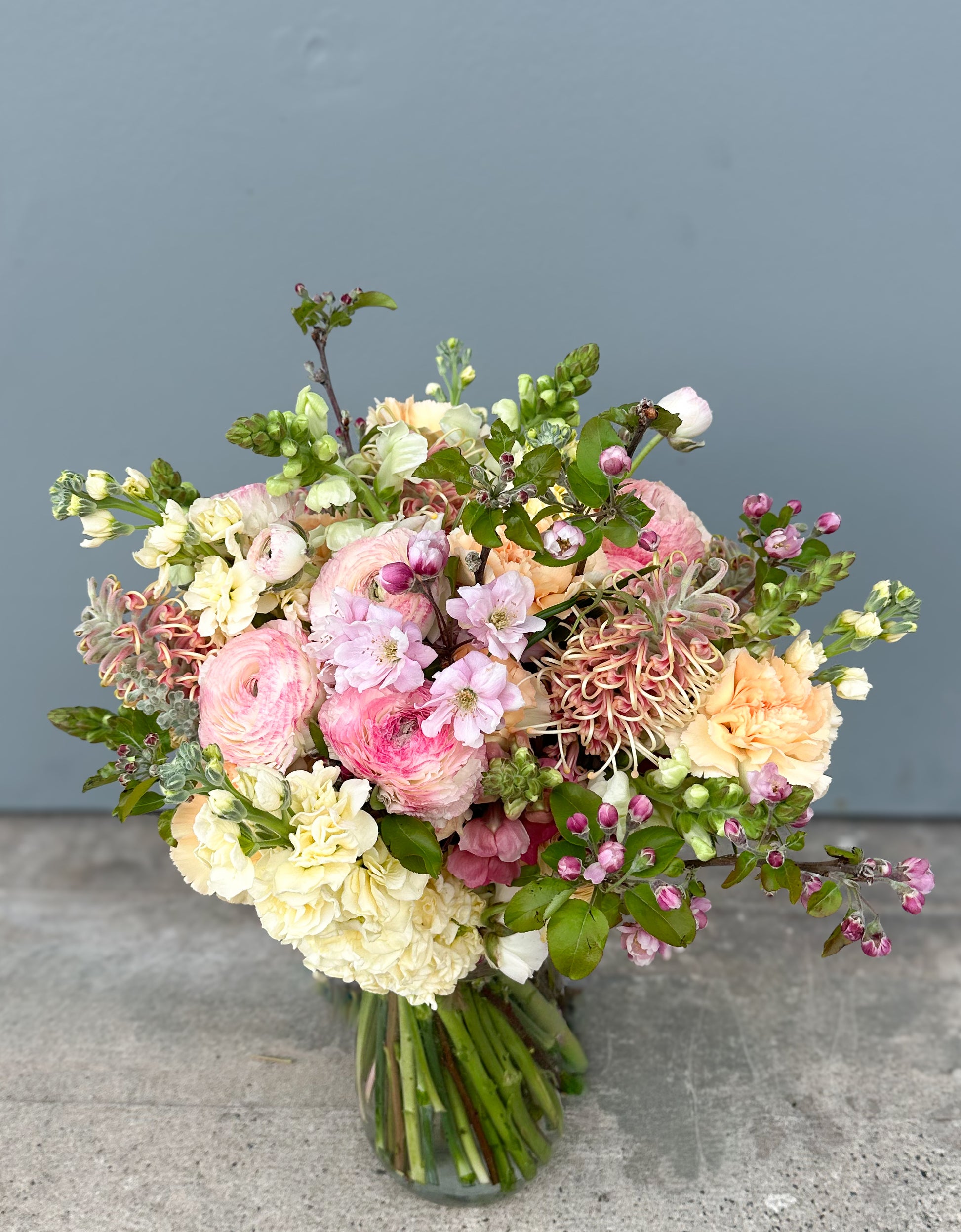 Please note: Flower varieties are informed by market and seasonal availability. Fresh flowers are perishable, and the lifespan of flowers does vary. The arrangements pictured are for stylistic reference only. Floral composition, type and scale may vary depending on floral availability. A redelivery fee may be charged if we are unable to successfully deliver using the information provided.